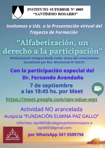 - Trayecto de formación: “Alfabetización, un derecho a la participación”. Septiembre.